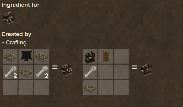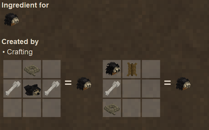 If there is any request for a more resource intensive recipe set, I can release that to future versions. Perhaps customize the size of pelt and quantity depending on the body part. Leave your feedback below!