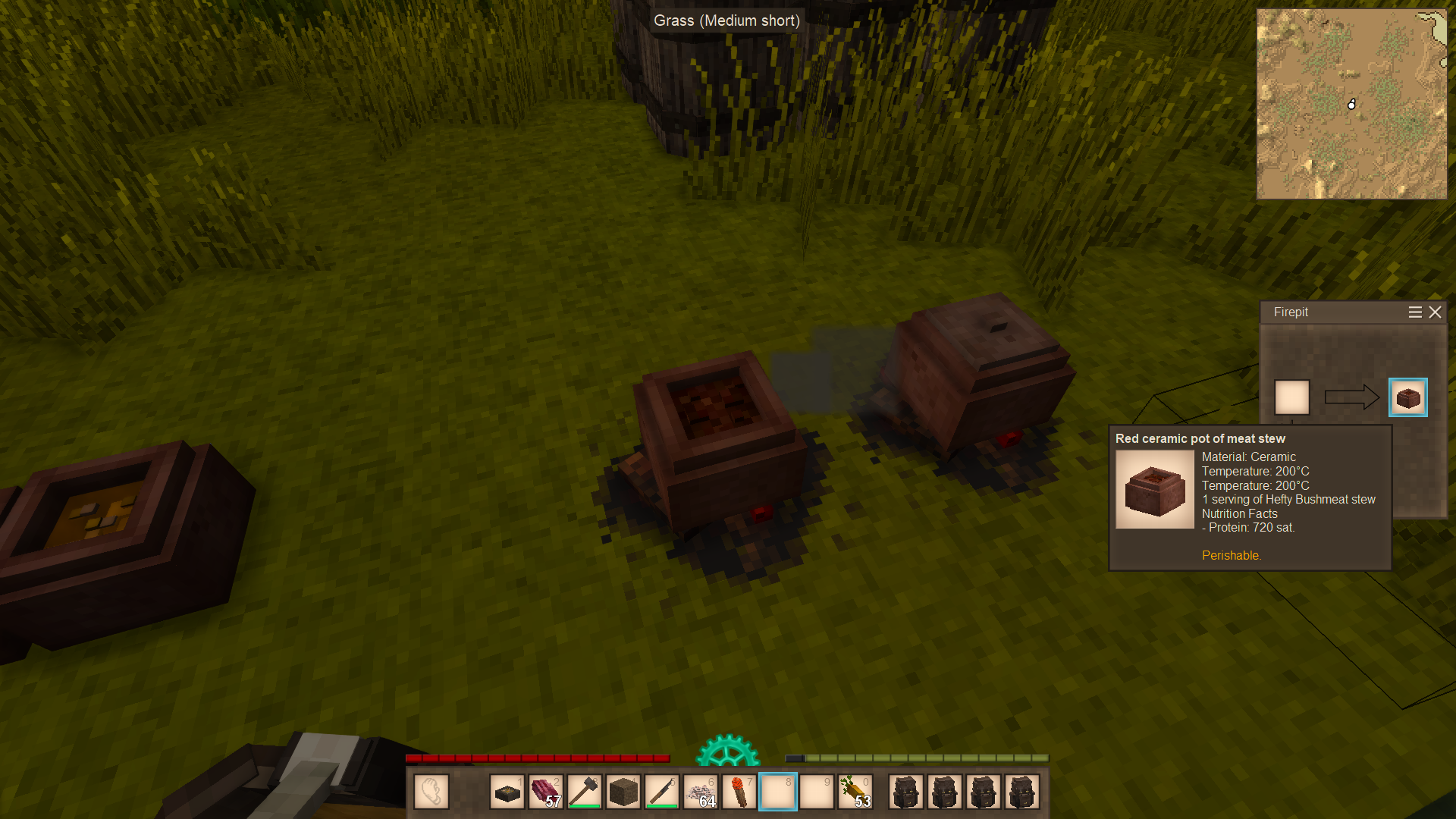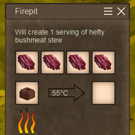 A very simple mod that adds bushmeats to the stew and soup recipes where you can usually put redmeat. You can put cured bushmeat as well. It will have the same textures as redmeat in meals, but only provide 180 protein satiety each while in a meal. A simple bushmeat stew with two meats will give 360 protein satiety and can be mixed and matched with redmeat.