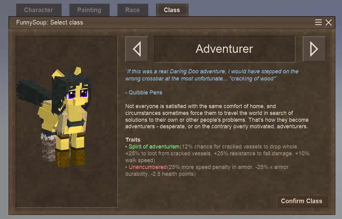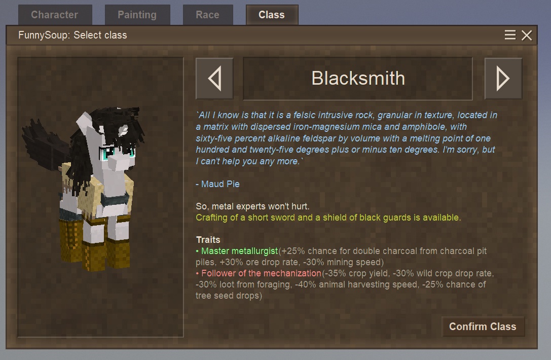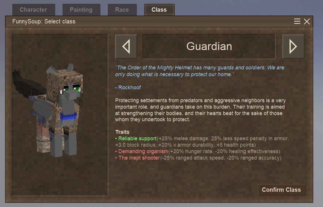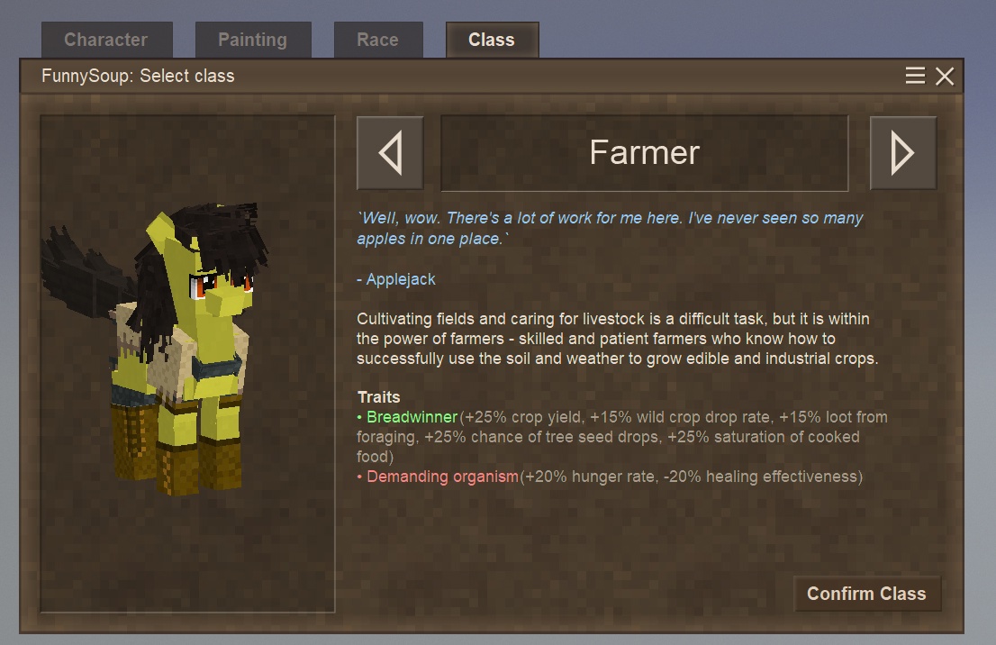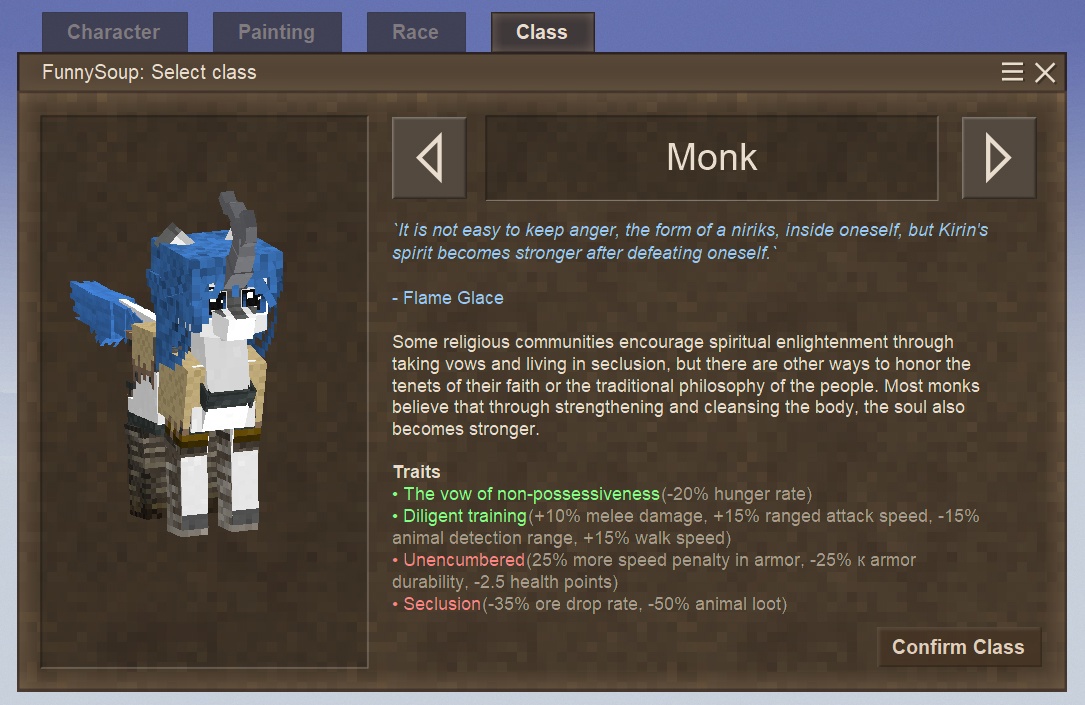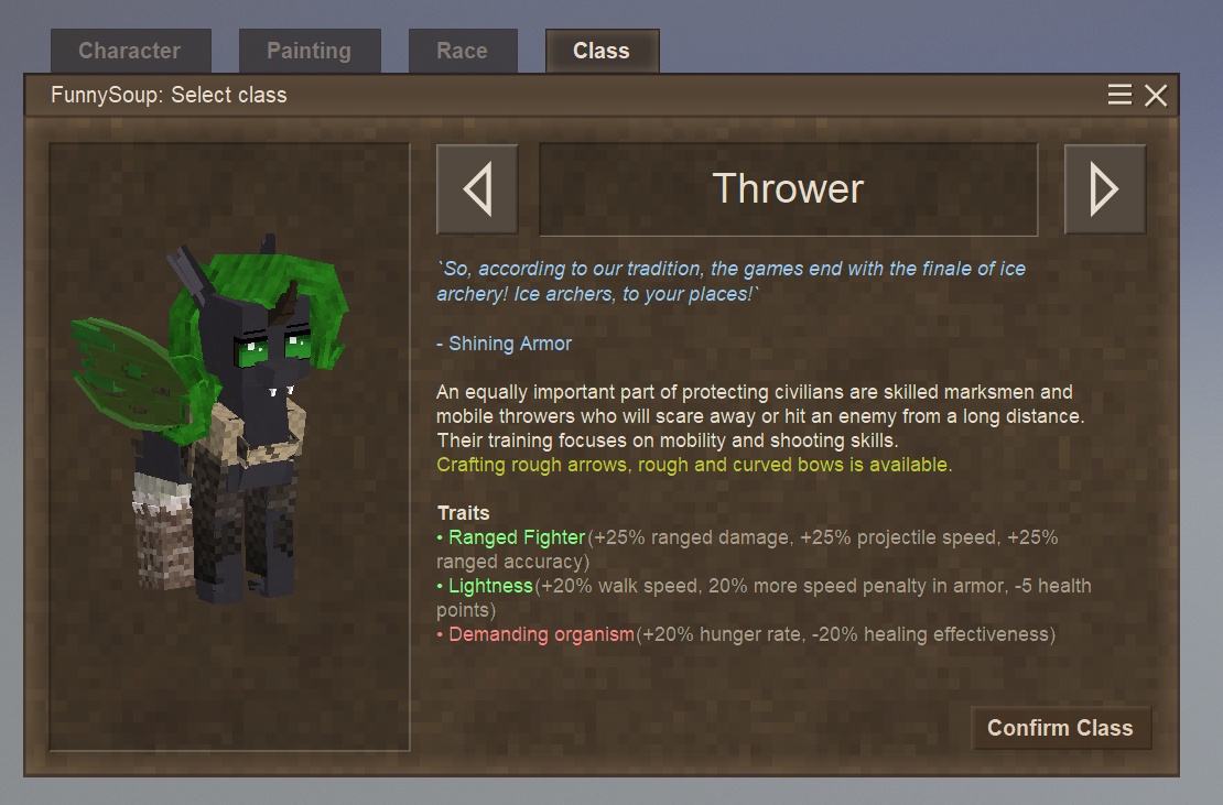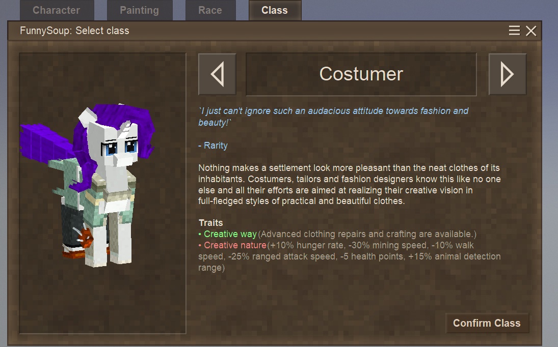 Adds 11 new classes with unique traits to play with the Kemono and PonyRaces mods. Each class has its