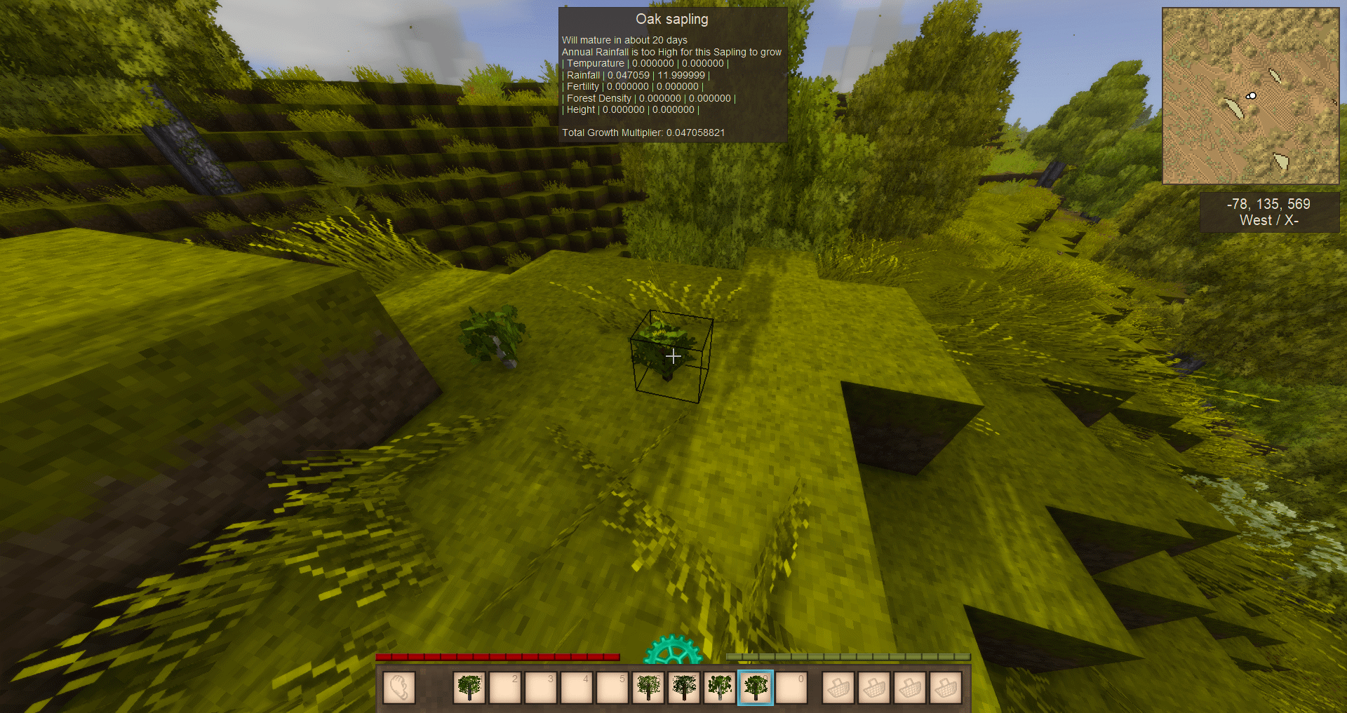 I got tired of players buying seeds for cold-weather trees or tropical biome trees, and then never buying wood again because they could mass-farm trees of a breed completely outside its home climate near their town. Currently the mod is set up to linearly multiply the current growing times based upon how far the annual climate in that region is compared to where that tree type generates in new chunks. In the future I plan to expand upon this premise and separate which subtypes of trees will grow in each climate based upon where the sapling is placed.