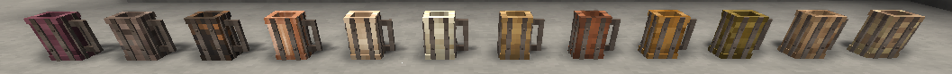 Any wood boards and metal strips can be used to customise your tankard (additional metals such as uranium are available in creative only).