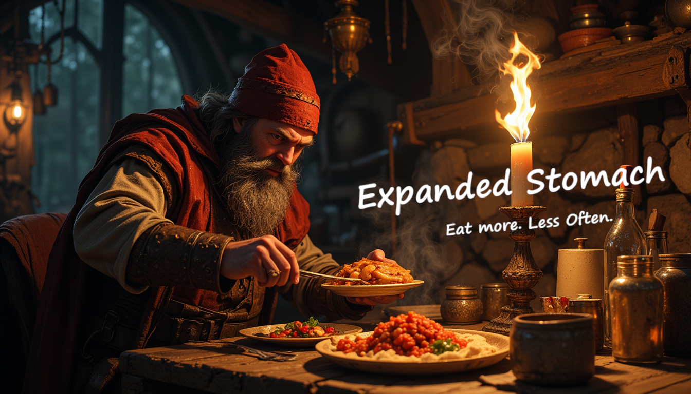 - Secondary Stomach System: Continue eating after your normal Satiety bar is full