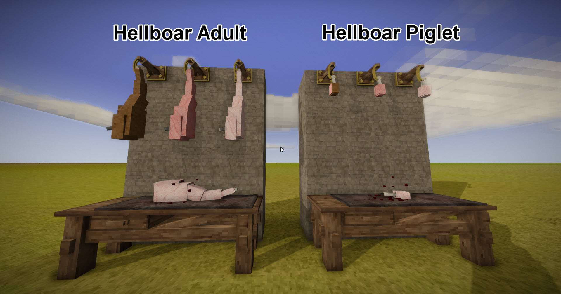 - Adult Hellboars - Added Fat and Red Meat as possible skinning/butchering drops