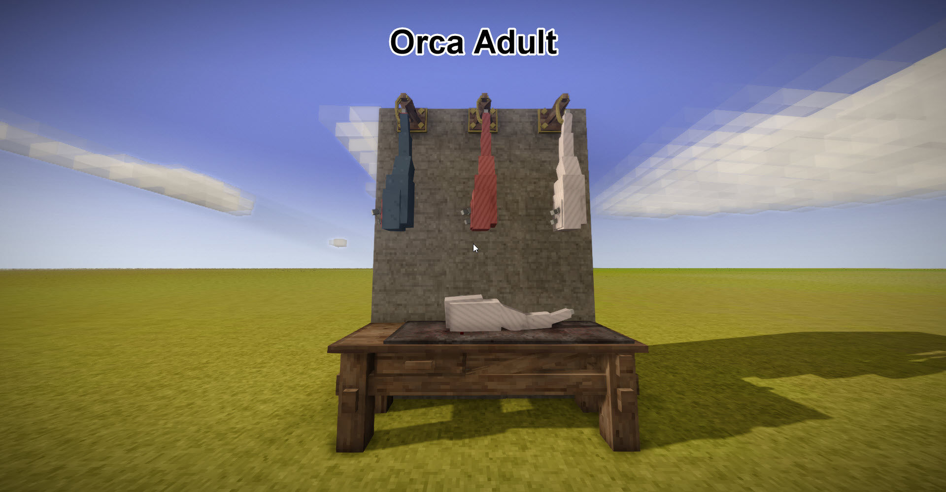 If you are wondering why some animals' butchering models are the same or look a bit weird anatomically (like the Orca), I'm just using butchering's built-in "generic" corpses. I added fish-like textures for the water creatures, but am otherwise leveraging existing models and textures.