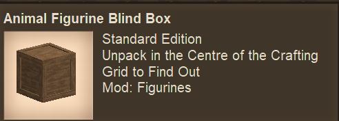 Figurines are now sold in Blind Boxes They can be unpacked in the centre of the crafting grid Animal Standard Edition and Fine Edition - Sold at the Artisan Trader, Mob Standard Edition and Fine Edition - Sold at the Treasure Hunter Mob and Animal Special Edition in Loot Pool | |||||||