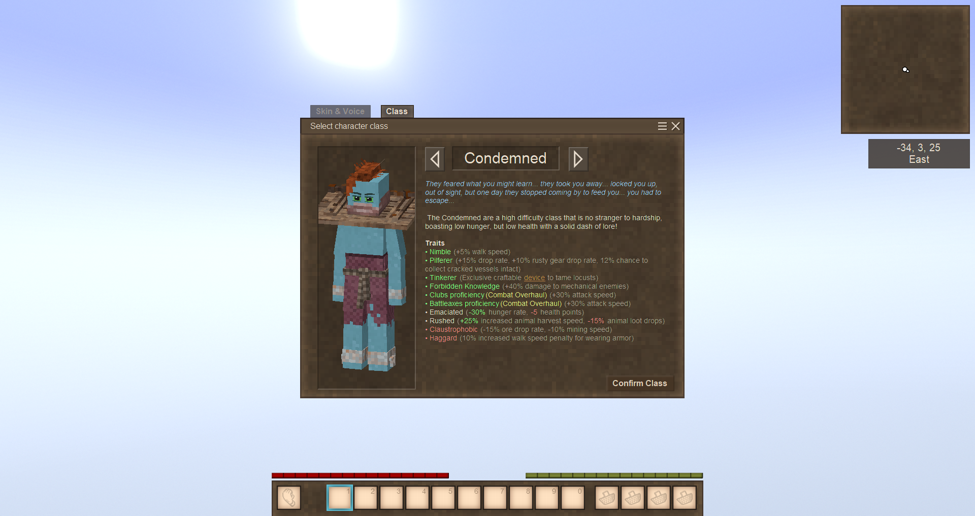 - Condemned: A Clockmaker alternative, with low Hp and low hunger rate, with bonus damage to mechanicals.