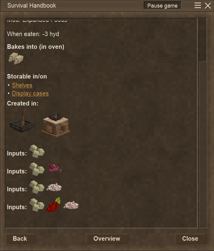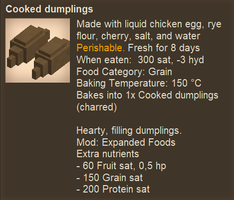 ExpandedFoods addon that allows making dumplings using berries and fruits as filling. You can use both vanilla and dried/dehydrated/candied variants. To avoid overlap with muffin dough recipe, you must also add salt.