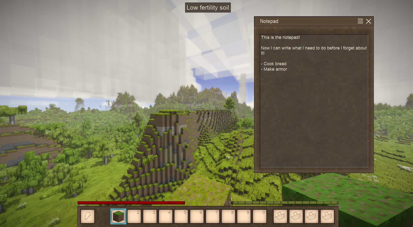 Added a notepad that can be accessed with the "N" key (Currently the notepad is shared across all the worlds) | |||||||