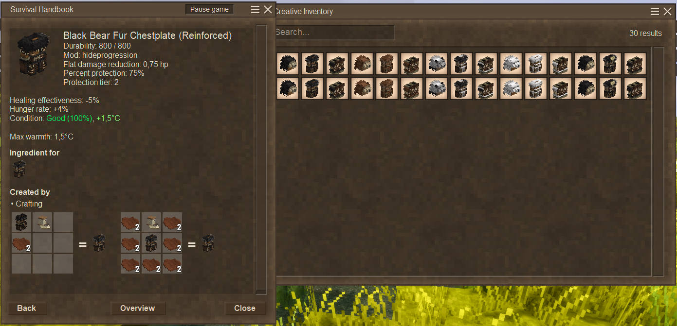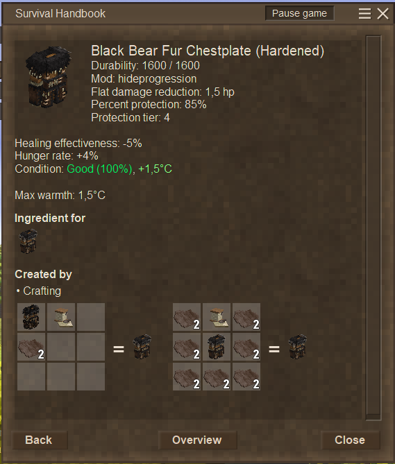 🔶 The temperature, durability, flat and percentage damage reduction depend on the type of bear hide used for crafting.