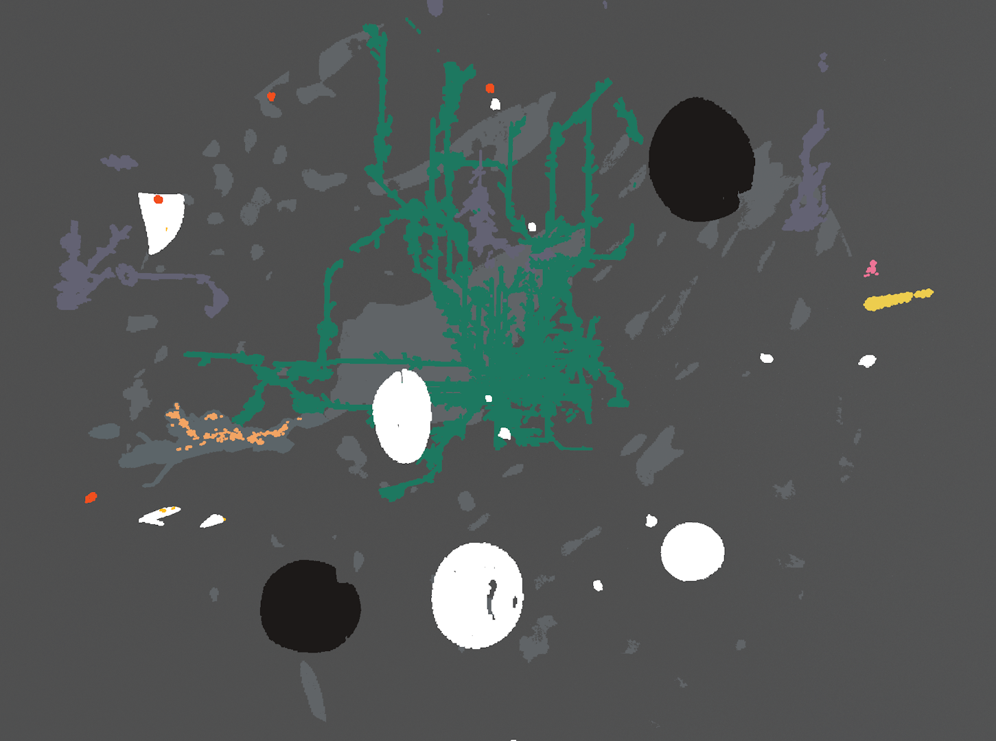 1) Bismuthinite spawns in Hydrotube and Intrusion veins, Hydrotube has a sub-deposit of Flourite.