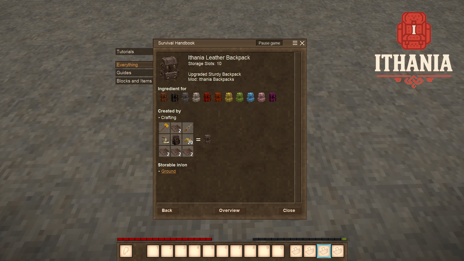 Ithania Backpacks! Please Enjoy the mod and feel free to provide feedback. Mod was tested on Vintage Story 1.20.12 Vanilla (No Other Mods). There is no combatibilty issues that I know of currently with other mods.