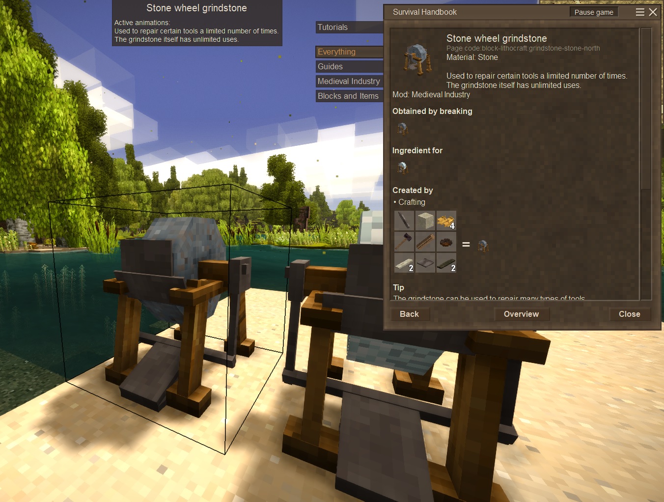 - Grindstone: the list of valid items/tools are now set in the grindstone.json; in principle any item with durability can be added to the list; look at the comment inside the json for more information