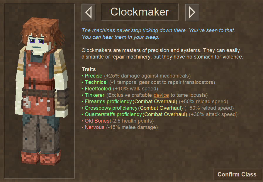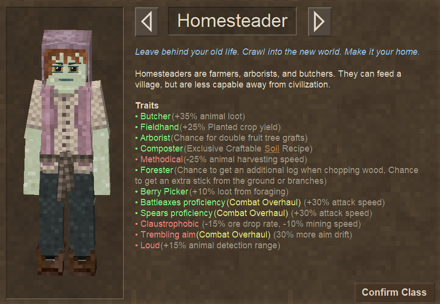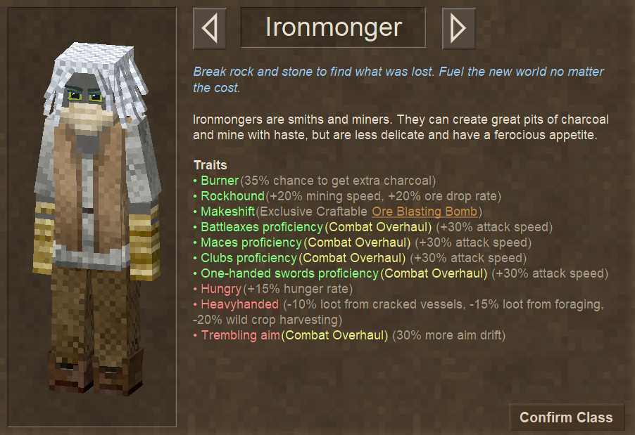 A mod I made for my server. Replaces Commoner with Homesteader and adds Ironmonger. Tweaks Malefactor and Clockmaker to remove ranged debuff.