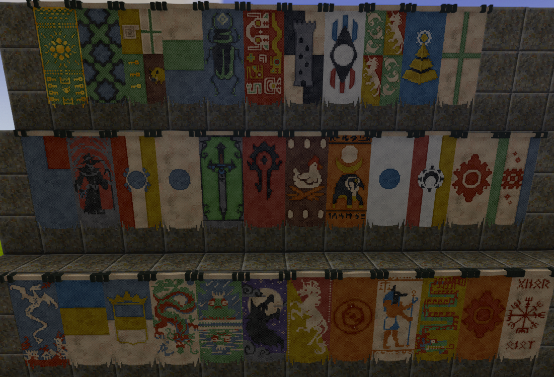 Added 8 new banners (sword, tribal, chicken, khonsu, Icenia, aged Icenia, aged Maester Alliance, aged white Maester Alliance) If you also use my Pins and Emblems mod (https://news.kalataka.ru/pins) I've made it so pins can also spawn in the loot tables of the ruins, however because of the way that I've done this if you have an old version of pins and this new version of more banners, no ruins will spawn at all so make sure you update to the latest version of the pins mod (1.0.5 or above). | |||||||
