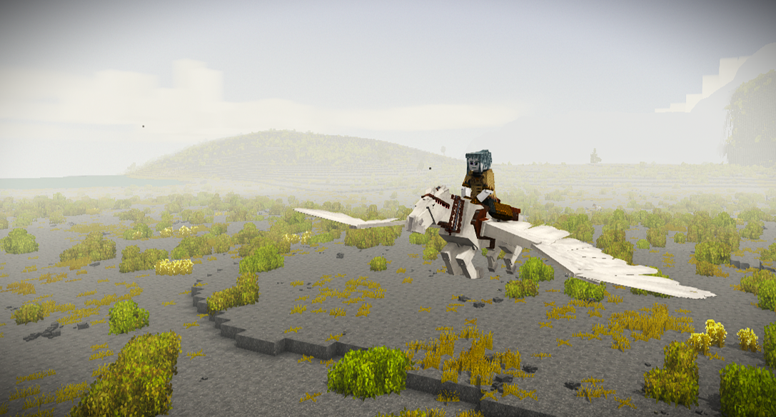 This mod adds pegasus (heavily inspired by Sky Cowboys) to the game that you can find in the world. They're tameable and rideable just like the horses from Equus