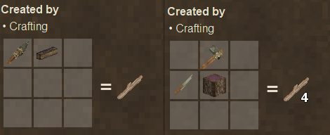 Alternatively you can craft them using firewood and a knife (if you already chopped the log) - both recipes should be balanced correctly.