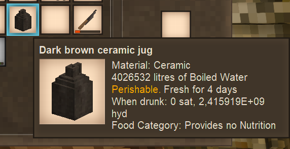 I can't thank you enough for this mod. I've wanted a legit thirst mod for years with this game. Not only to add uses for the various juices and milk, but because with vintage story's focus on a more bare knuckes semi realistic approach to a survival game, the absence of thirst always felt off in the first place.