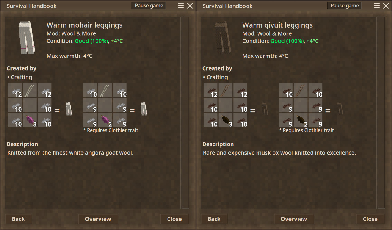 Michael00181 My mods are based on VS' realism, and turning wool into flax would be quite absurd... And for "realism" some things simply require EITHER wool or linen but not both.