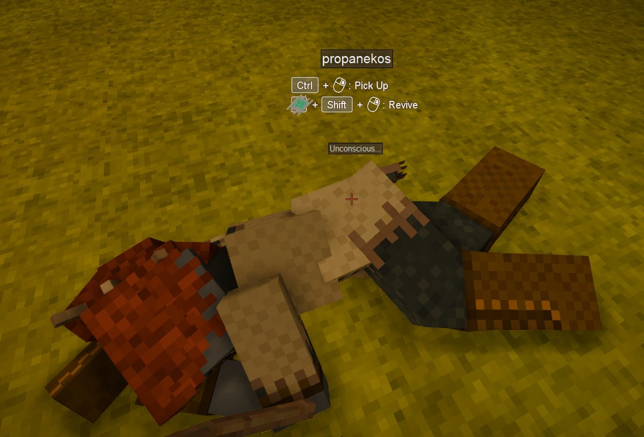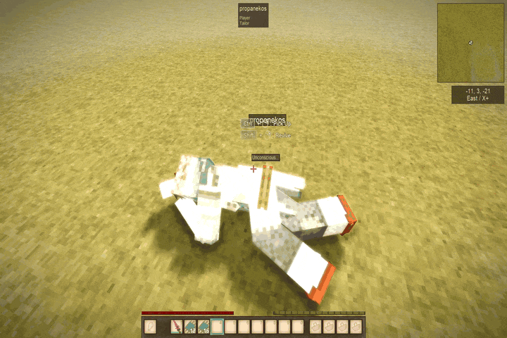 If you want to Revive player you need to hold (Shift + Right Click) on him, you move too much and you will cancel the action. All medical items work now, modded might need a compatybility patch, the unconscious player is healed by the amount specified by the used healing item. (For now, poultice, bandages, smelling salts)