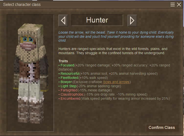 Hunter now has reduced detection range to get closer to animals before they run away, making it easier to line up spear throws and bow shots. In return, armor now slows them down further. They will still be faster than most other classes in lighter armor, but heavy armor will be much more cumbersome.