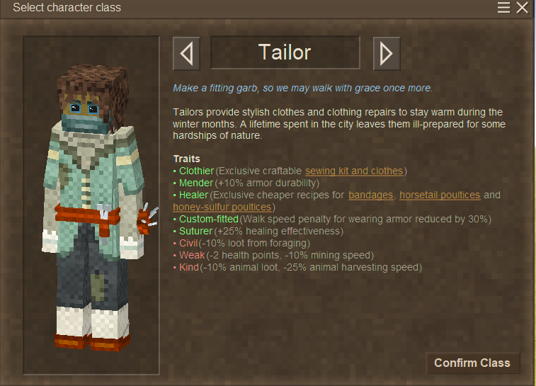 A collection of small tweaks to the vanilla classes, with an emphasis on giving Clockmaker and Tailor more unique strengths, though Blackguard, Malefactor, and Hunter also get very minor changes.