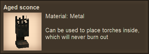 When I first got this game i did a search for sconce, only to not find them & having to do a google search to find out what they were called. That was a disappoining day.