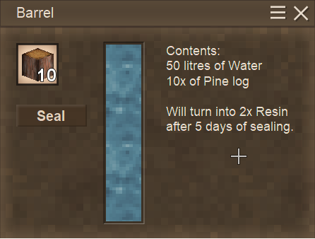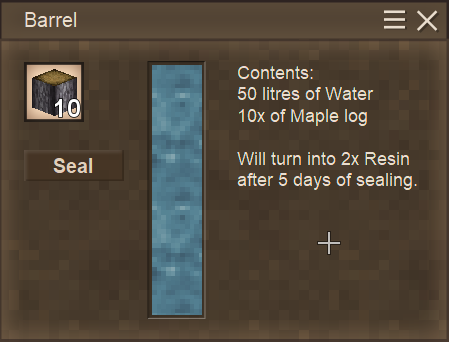 5 maple logs + 10 liters of water ---> In a sealed barrel for 5 days = 1 resin (New version)
