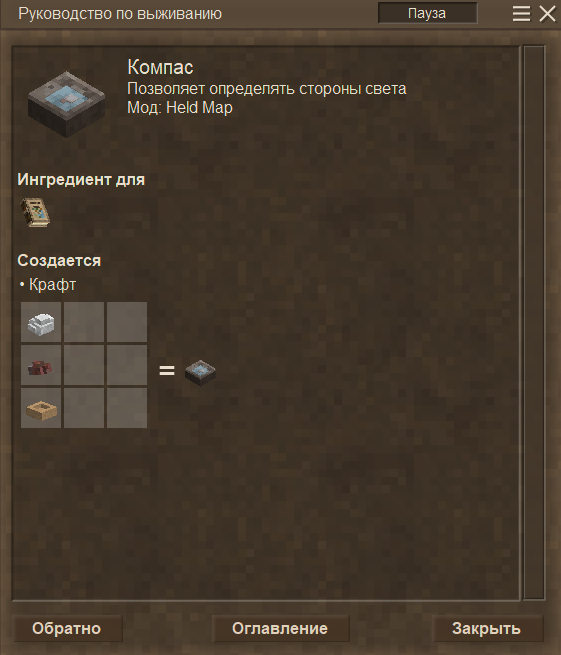 Мод сделан на основе мода HeldMap, модели и текстуры из мода Physical Map | |||||||