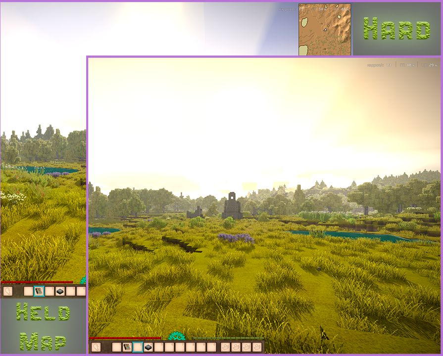 Этот мод по сути является улучшенной версией мода Held Map, но так как он сильно меняет и усложняет рецепт карты и добавляет еще один новый предмет, я решил выложить его как отдельный мод.