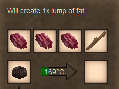 Allows you to render 3 raw bushmeat pieces into 1 fat in cooking pot. Requires either 1 stick or bone for stirring (it's a recipe discriminator for compatibility with other mods which may make bushmeat a cooking recipe ingredient).