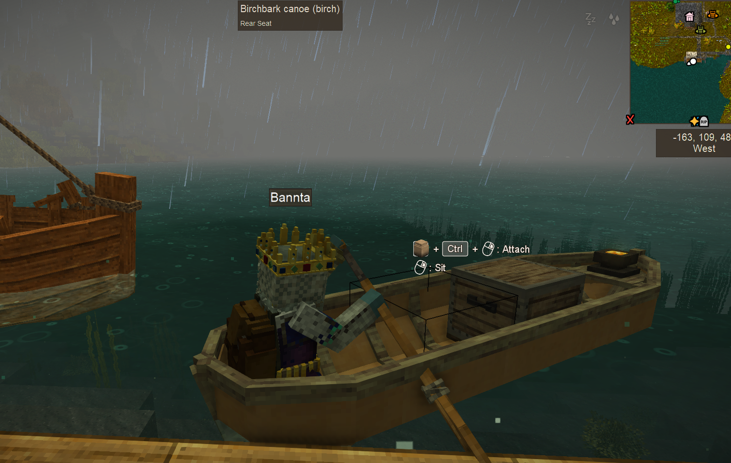 - To place a chest or something on the Canoe, it works like an ELK or a boat; use CTRL+RIGHT CLICK.