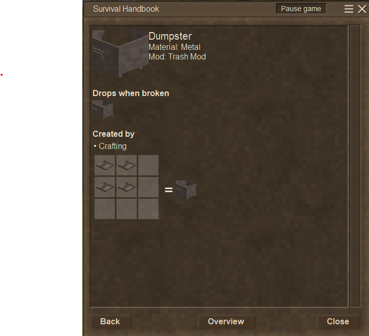artemax44 I've considered this as i'm going to release a new version soonish. I'm going to rework the models of the cans. I will add variation for iron only for the trashcan and trashbin. As I think these are fair metals to use for the item. I think that using other metals like copper or gold etc.. are not materials that would be functional for these items with the relasim of the game. I'll consider a wood trashcan design as well but I need to consider adding all the wood variations to that and may not come until later.