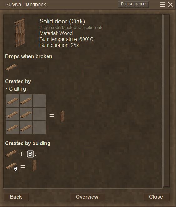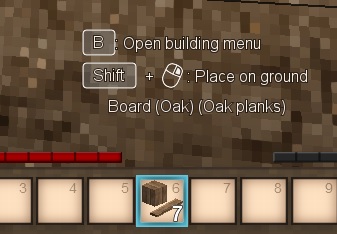- Adds a building menu ('B', can be remapped) while holding a block ingredient (an oak board, for example), which allows you to select a block and just place it without fiddling with the crafting grid. Materials will be automatically consumed from the inventory.