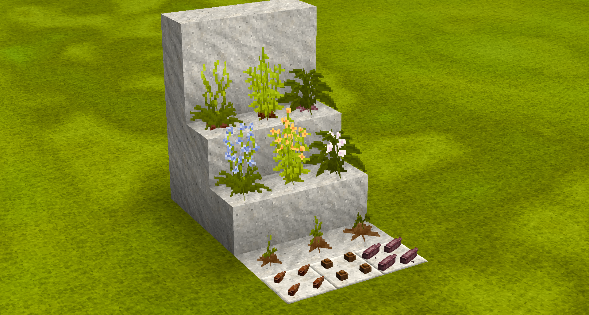 Added decorative flower blocktypes and recipes. Combining a seed tuber with one compost makes a decorative flower of the type of plant. Thanks egoanditspwn for the suggestion.