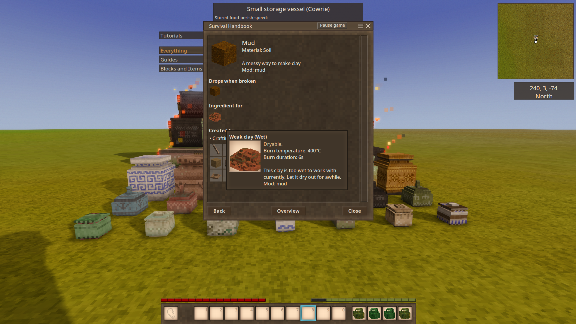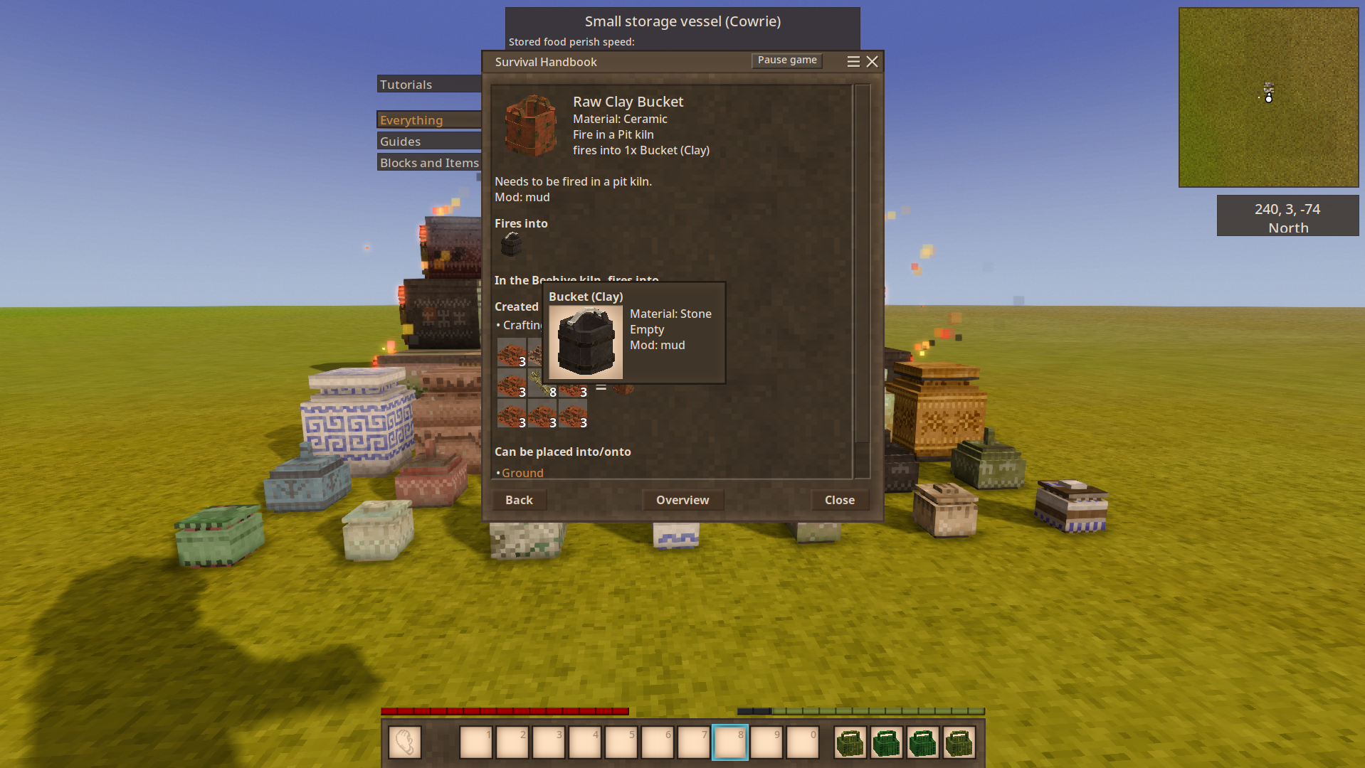 Mud mod expands pottery and clay forming system. You can now use dirt; to make mud; to make weak clay; to make clay. Over 500 new items, resources, and tools added all focused on pottery. Mud mod also adds new pottery blocks for decoration. Make your best fancy kitchen using the mud mod. Additionally, you can build a clay bucket to speed up farming tasks and other tasks related to needing a bucket or just build them as cheap spare buckets and save your wood. Most mud items come in many different pottery patterns and colors: