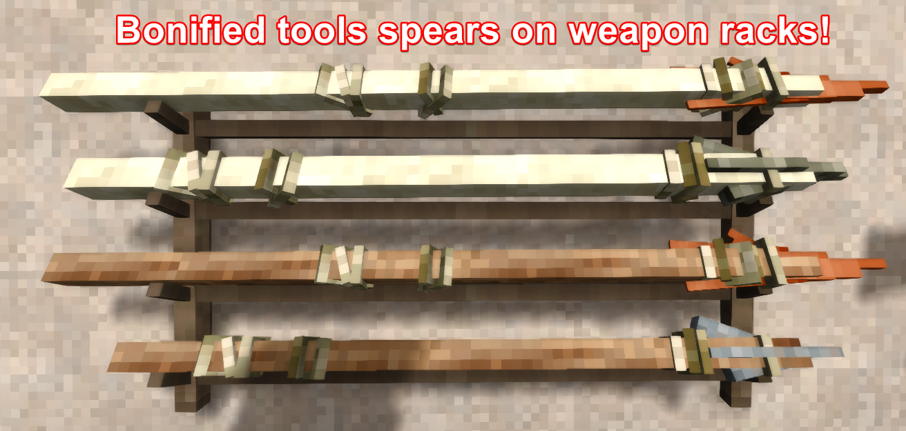 - I believe the spears in this mod can be added to the racks without my patch, so my patch mainly just fixes the floating spears.