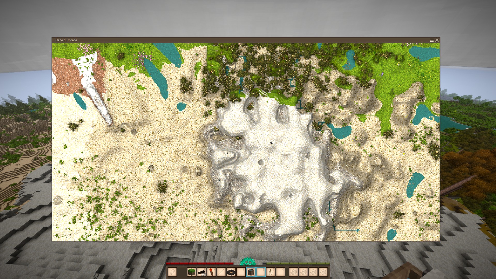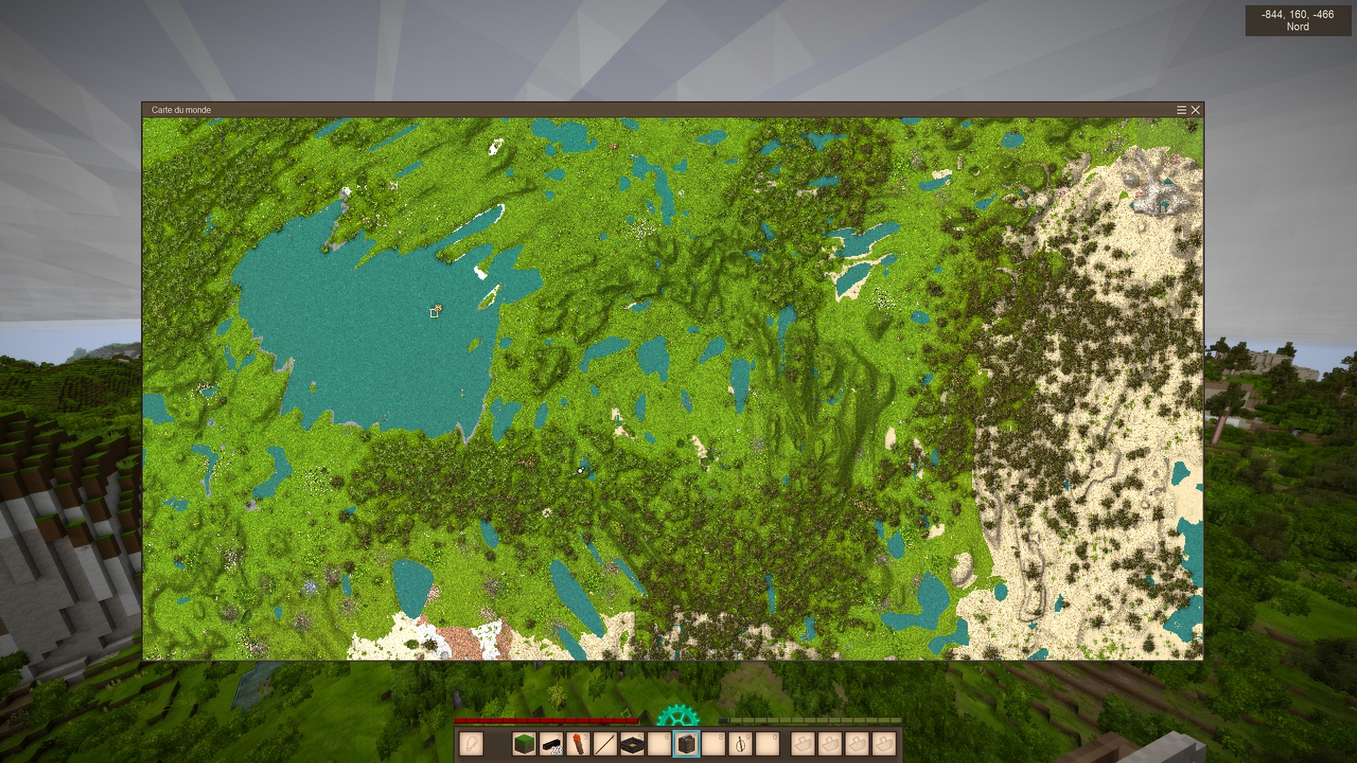 Note that the map doesn't use climate/season tinting, to reduce the visual difference between old and recently visited chunks.