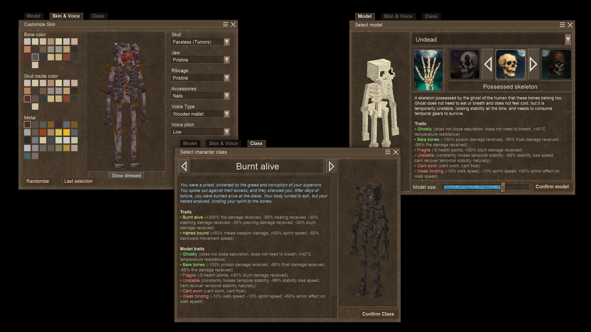 Maltiez was wondering if there's a way to disable just the class functionality and possibly be allowed to fork the mod, working on a heavily modded multiplayer server with some friends and I'd really like to give the skeleton traits but the class' from the mod are causing a conflict with the gloome class' mod which we're using in addition, in singleplayer I can set the skeleton mod to visual only via the instructions but unsure if that would work for the multiplayer server, and even if it works I can't balance the traits to match our server individually. Any help would be greatly appreciated and or permission to fork the mod post balance if allowed.