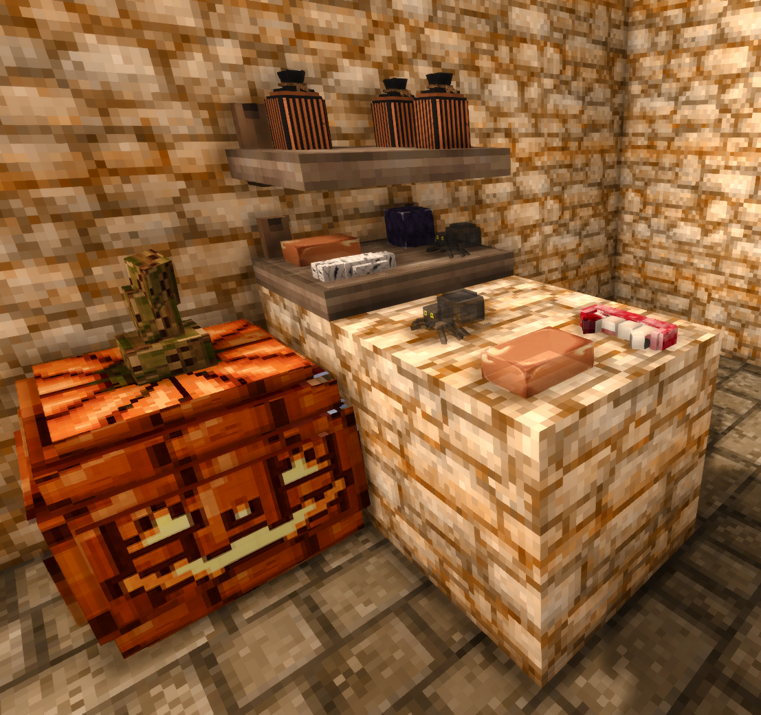 - Jack O' Lantern: The essential Halloween decoration! A carved pumpkin that emits light, craftable via a recipe.