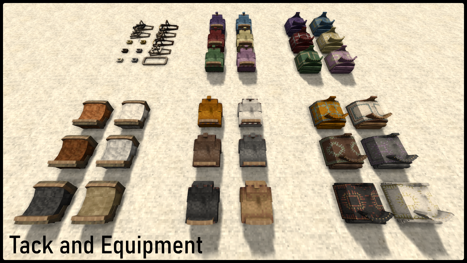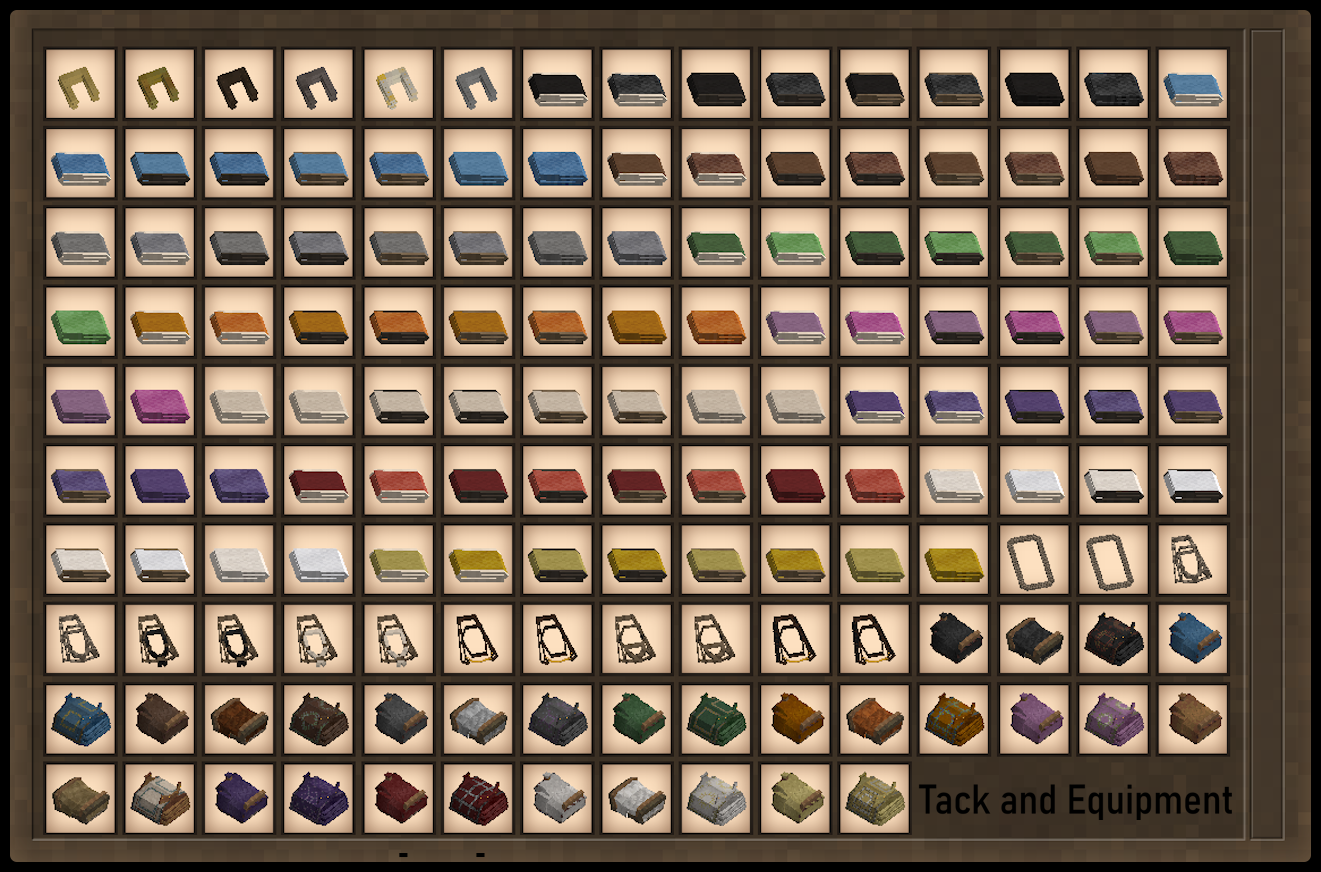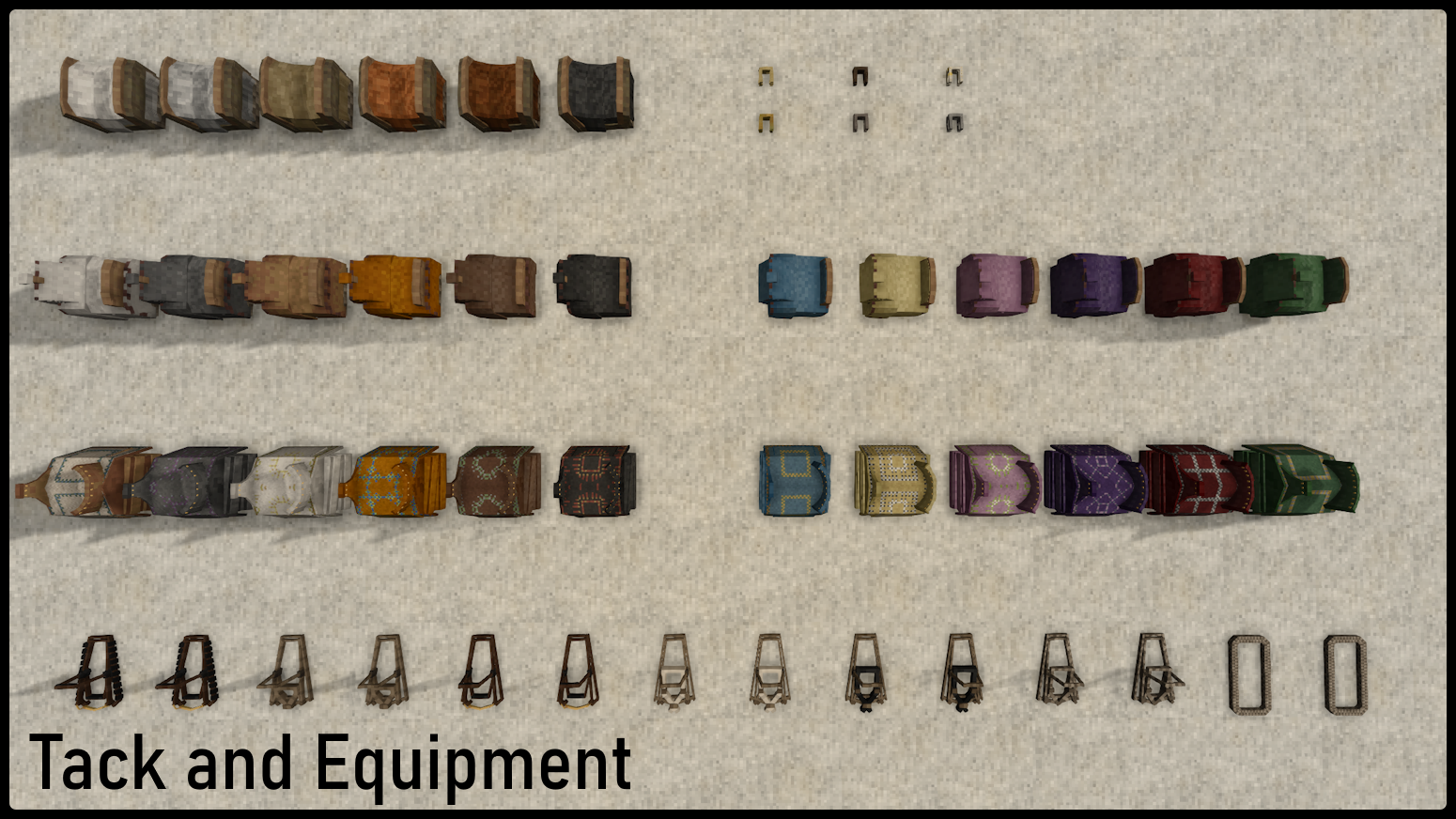 Adds various saddles, bridles, and saddleblankets for Equus and Monoceros
