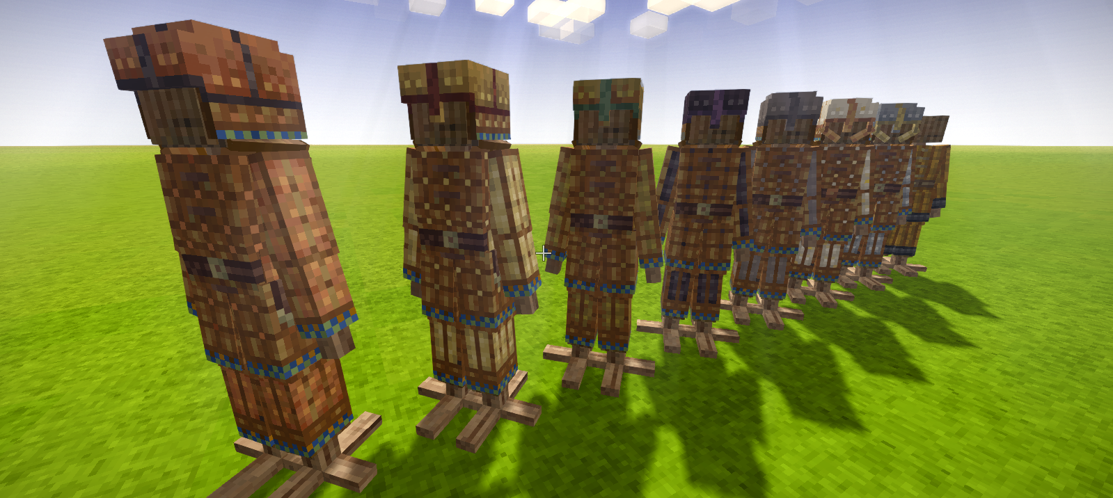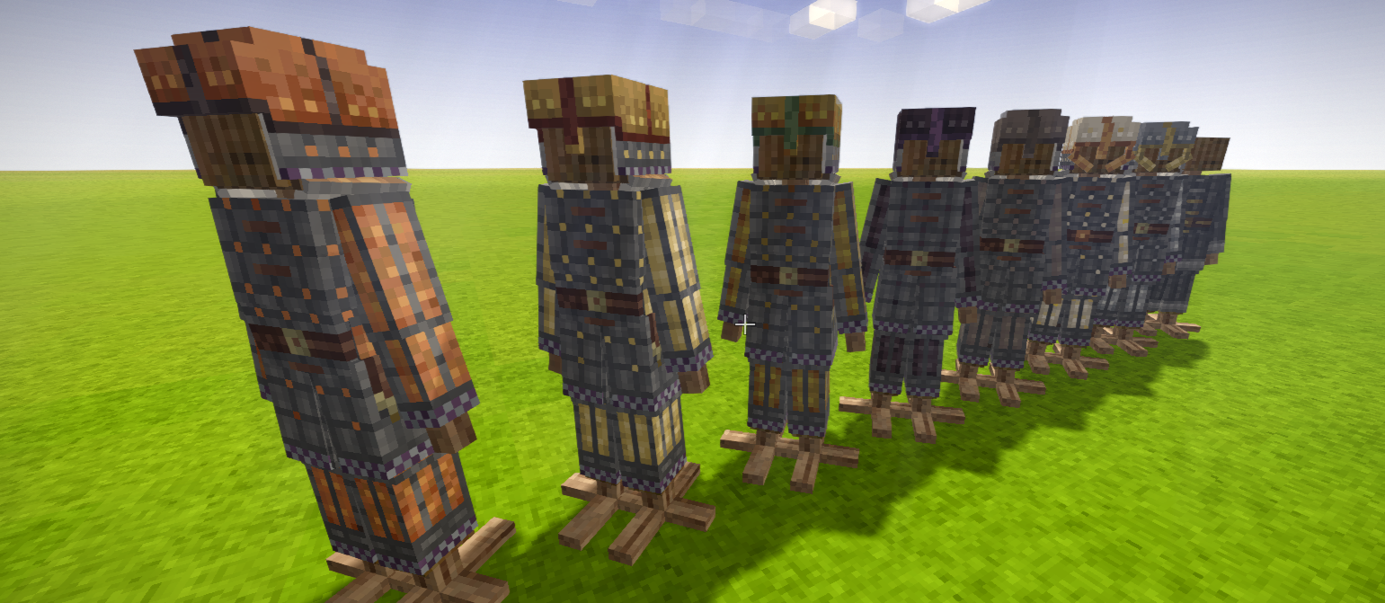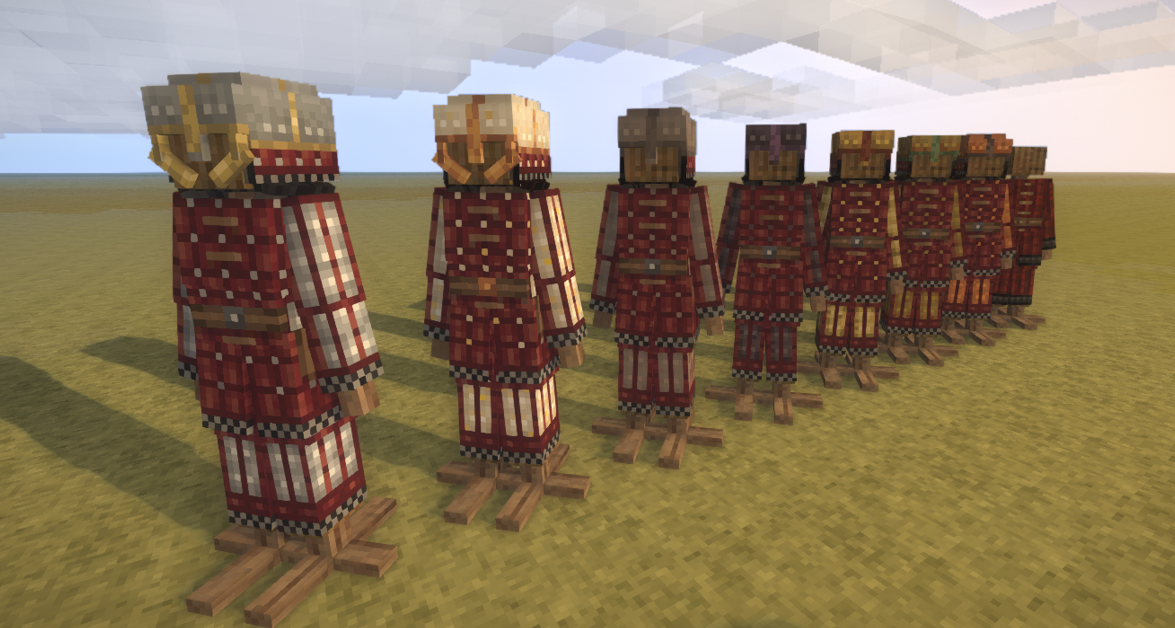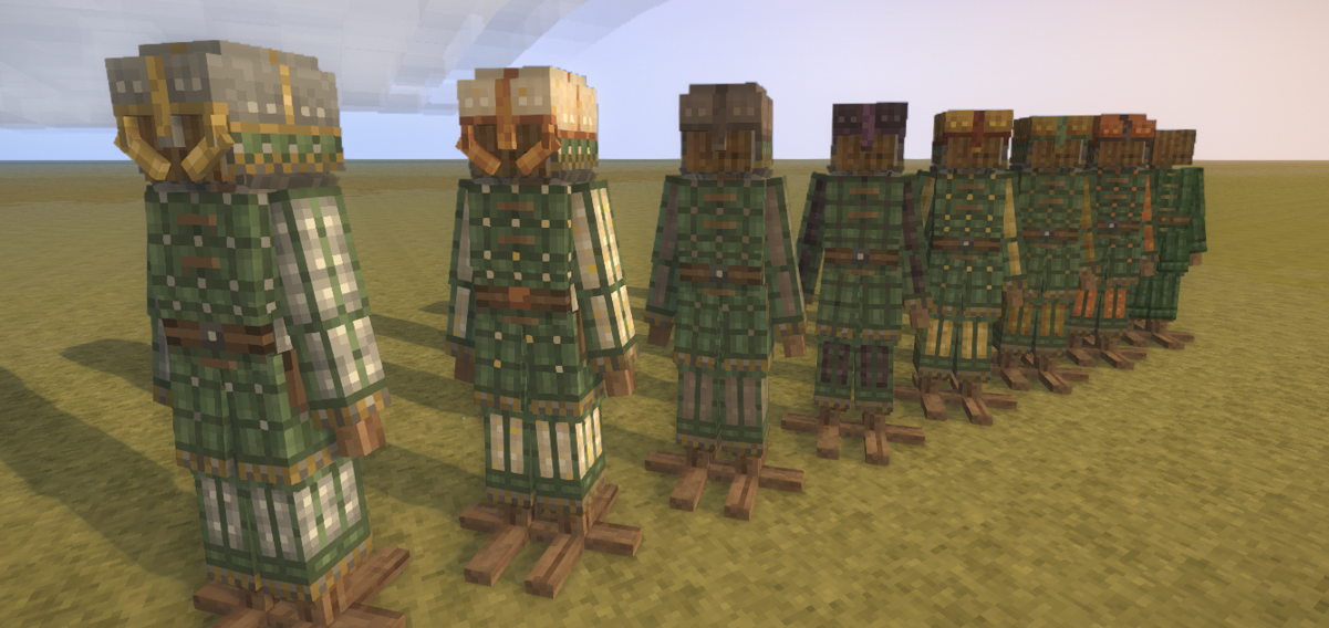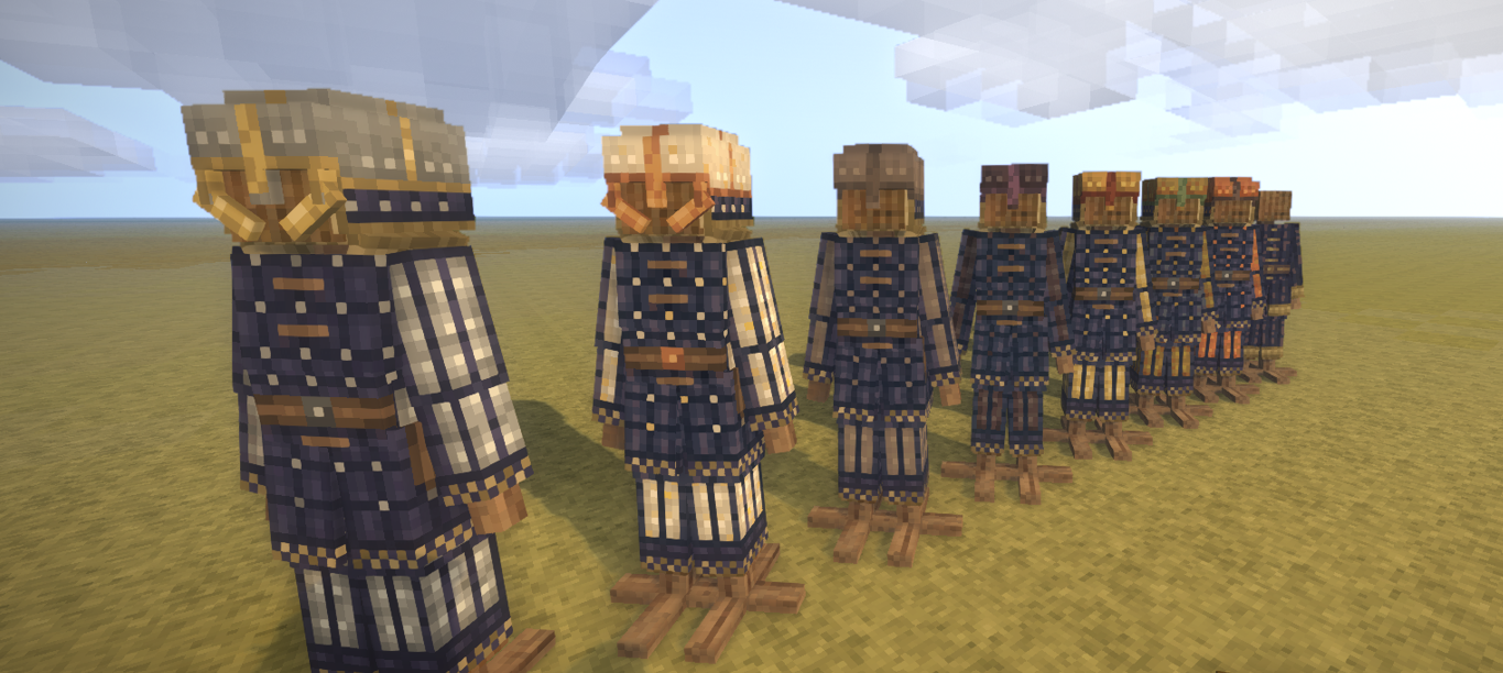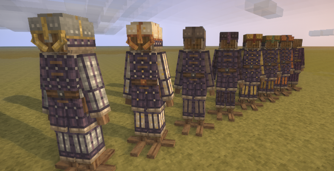 Adds the dyeing mechanic to brigandine armor. I've set up blue, green, red, black, purple, orange, and grey variants and recipes to make them. Still a work in progress.