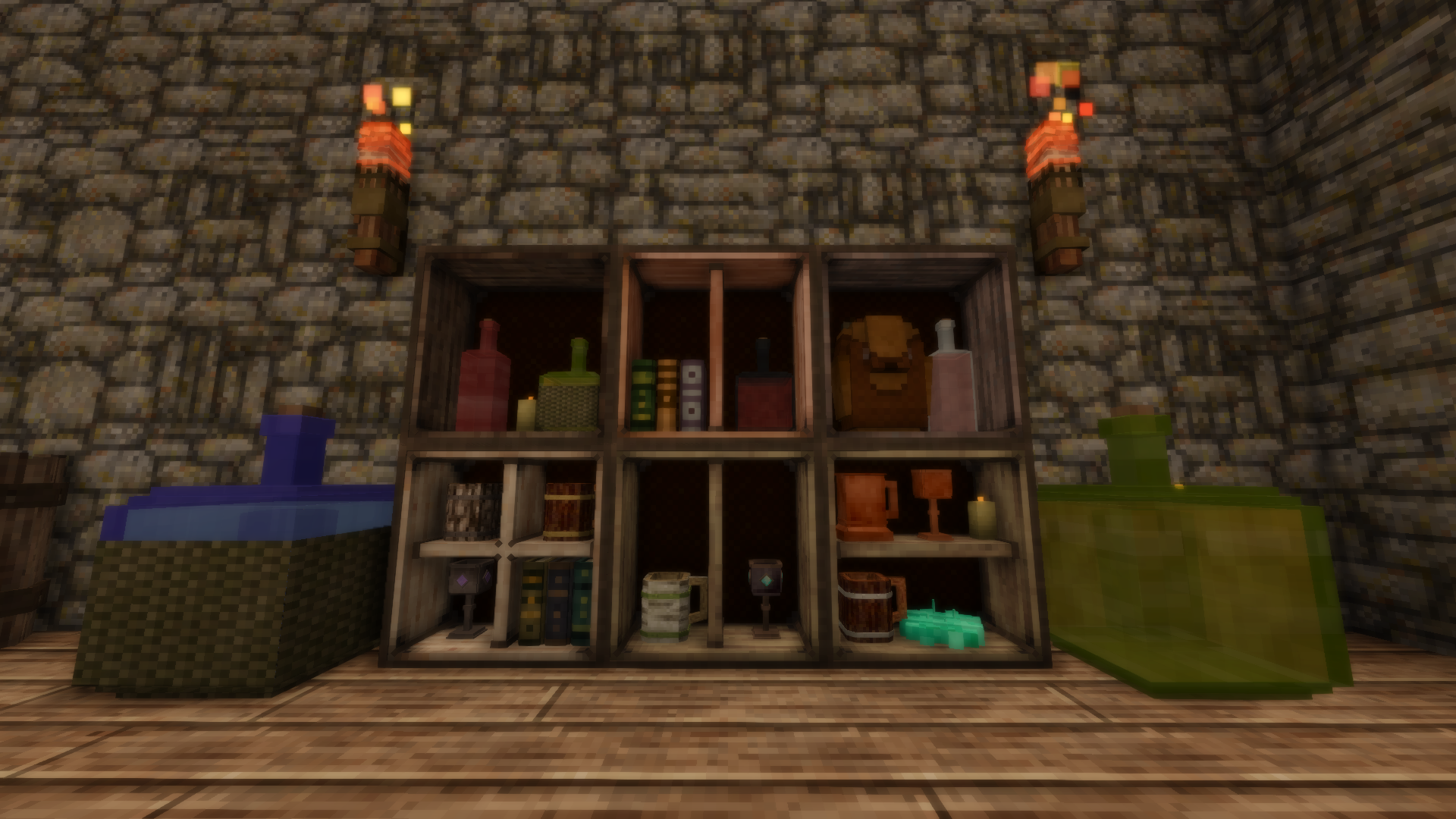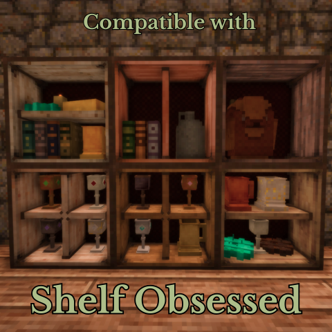 - Shelf Obsessed: Allows you to place tankards, goblets and bottles on bookshelves.