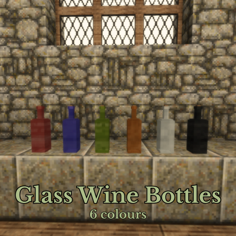 I do like the sound of adding support for Bricklayer, and I've had a play around with it based on your suggestion. My only roadblock is that my wine bottles each have a custom texture to make them look less plain than regular glass - I'd have to make a new texture file per coloured glass block in Bricklayer, which is possible - just tedious. Otherwise, I might just be able to make them all the default glass textures, which would remove the detail, but would be much less tedious. I'll have a look into this down the track.