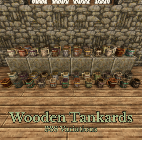 LunaGore I'll definitely look into having varied wood types for the wooden tankard. The tankards in Tavern Additions look good. I'm gonna redo my wooden tankard model at some point and make it slightly rounder - but still squarish, like how the base-game buckets and barrels are. Thanks for those suggestions!