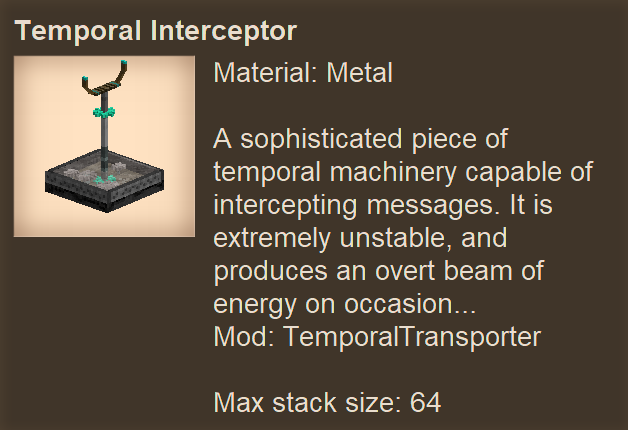 This mod introduces Temporal Transporters and Temporal Interceptors to the game.
