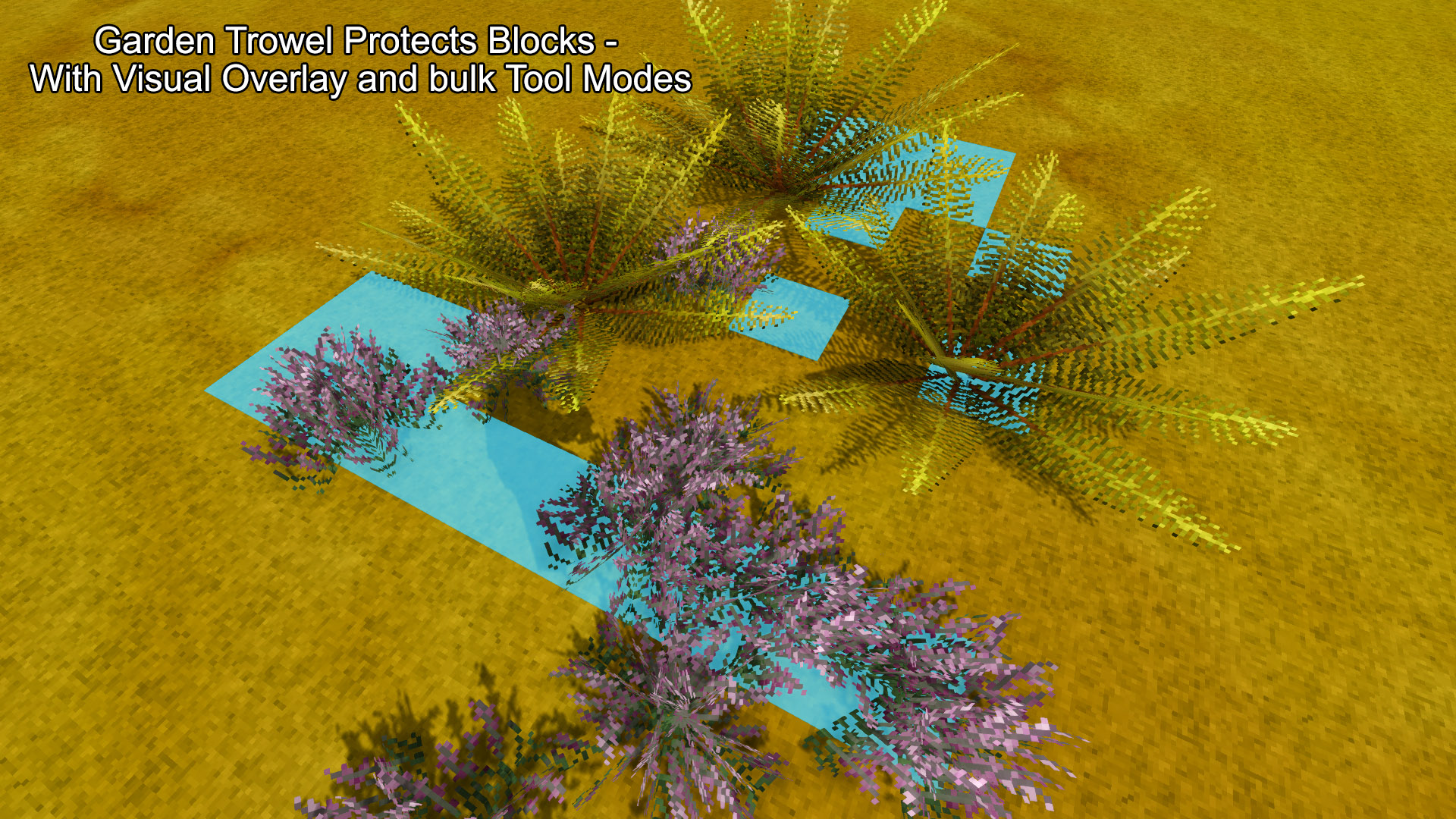 • Tool mode (press F) to bulk protect/unprotect with the garden trowel. Comes with overlay to quickly see what is protected. New config to disable overlay.