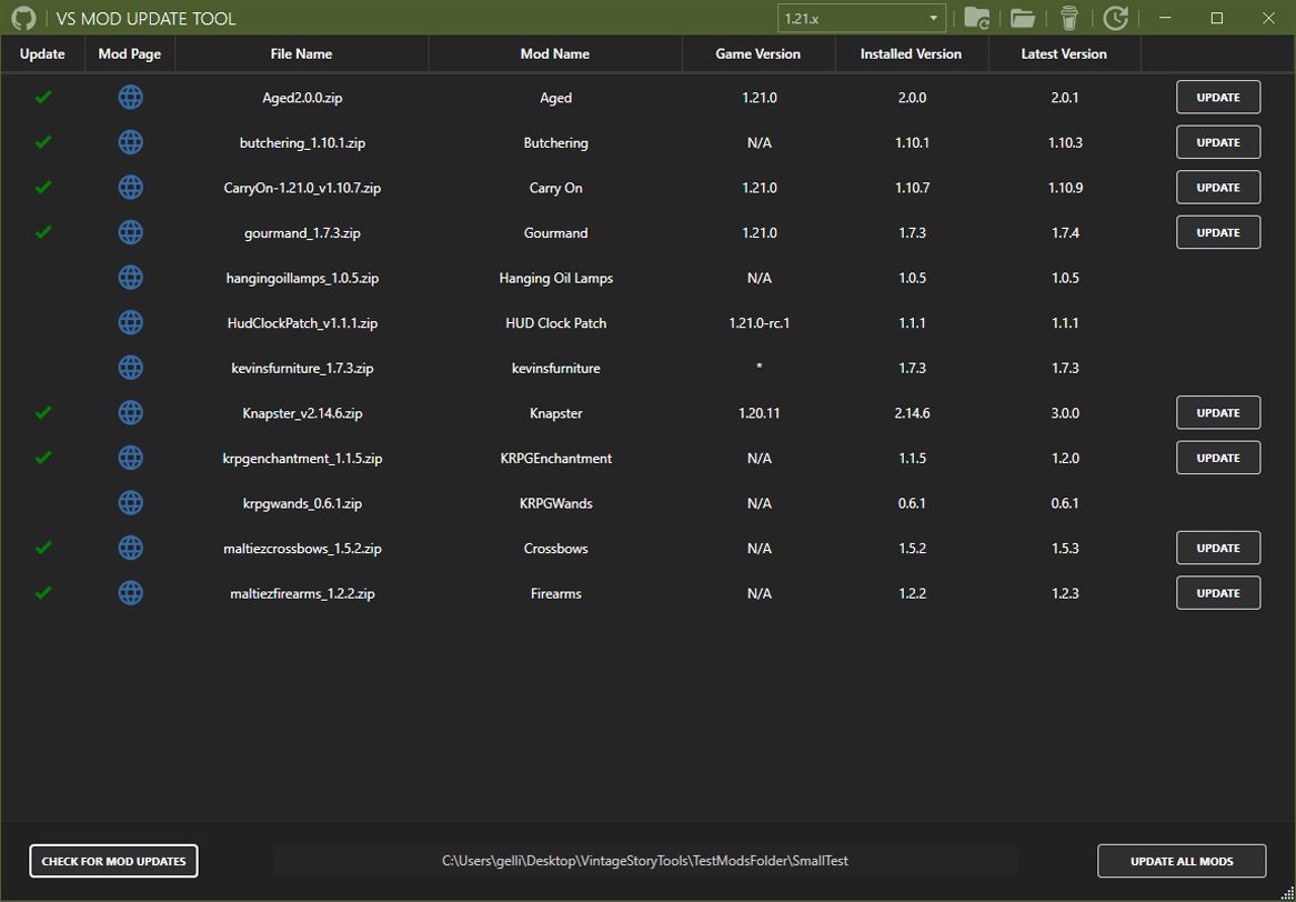 This is a fantastic tool. I was getting tired of doing my updates manually with a million tabs open. That said, I do like having some tabs open to be able to see what's changed. Does the modding API give you the mod page URL? If so, having the 'Mod Name' column into links to the mod page would be a nice QoL feature. Ideally so that--when I see a mod has updated four times--I could quickly go check out the changelog to see if I want to update or not.