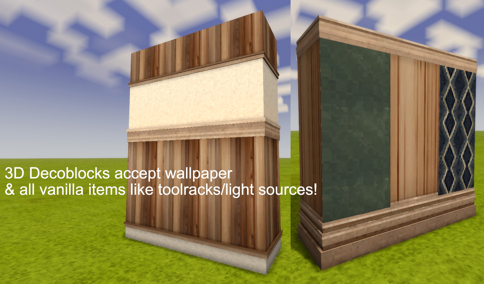 Some have 3D versions of themselves! Use a planer on (recolored or not) decoblocks to get that specific color of wallpaper as well. :) (Or use crafting grid after breaking.)
