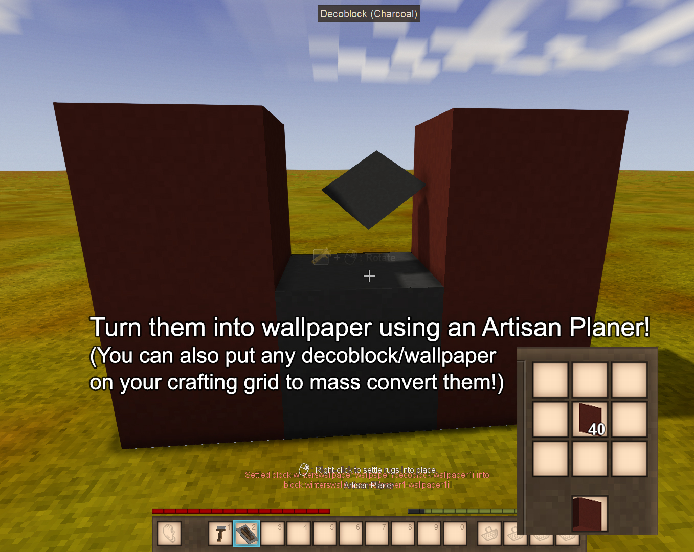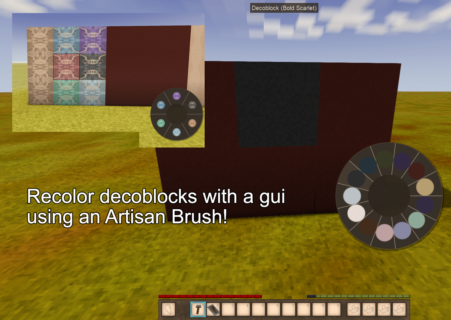Place wallpapers anywhere in your crafting grid to conver them to (and from) decoblocks. Decoblocks can often be recolored with an artisan brush!