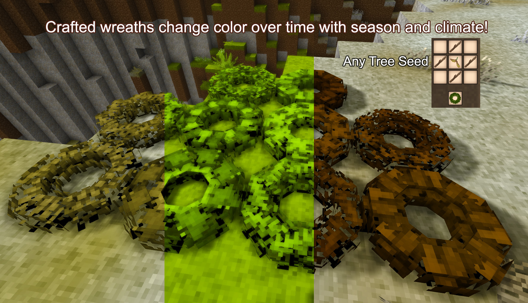 While this mod started out as "Winter's Wallpapers" it's started to gently grow here and there with a contribution or two from other talented modders who bring my silly ideas to life with amazing models. Case in point, Freaky (who honestly should be working for Anego) made this wreath. And in true Freaky fashion, it supports all the vanilla leaf types. And in Pure Winter fashion, it should have seasonal variants. AND IN SUAVEDOGGO FASHION it will eventually have lights and decorations as well. 😂